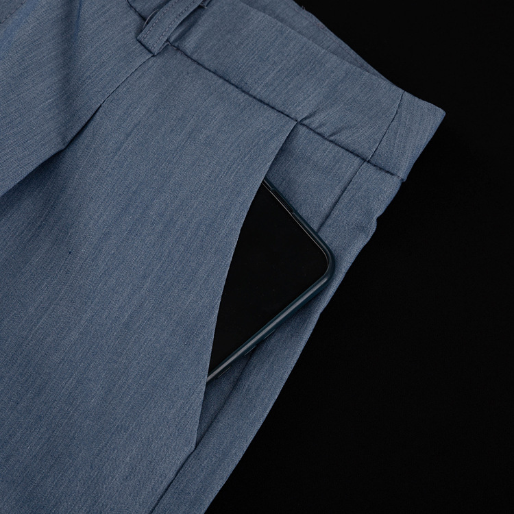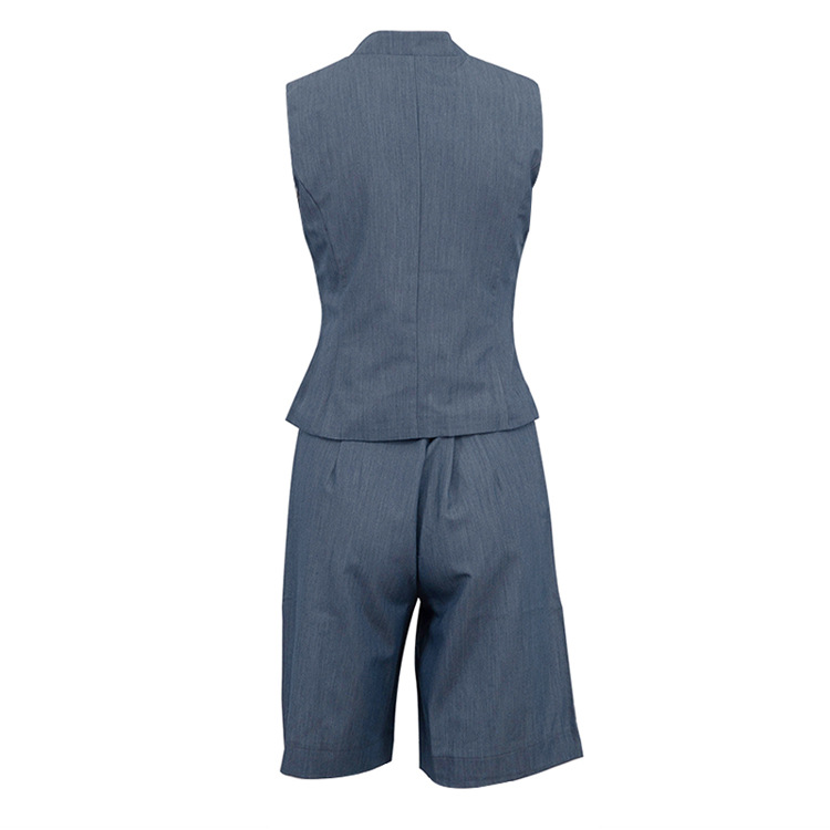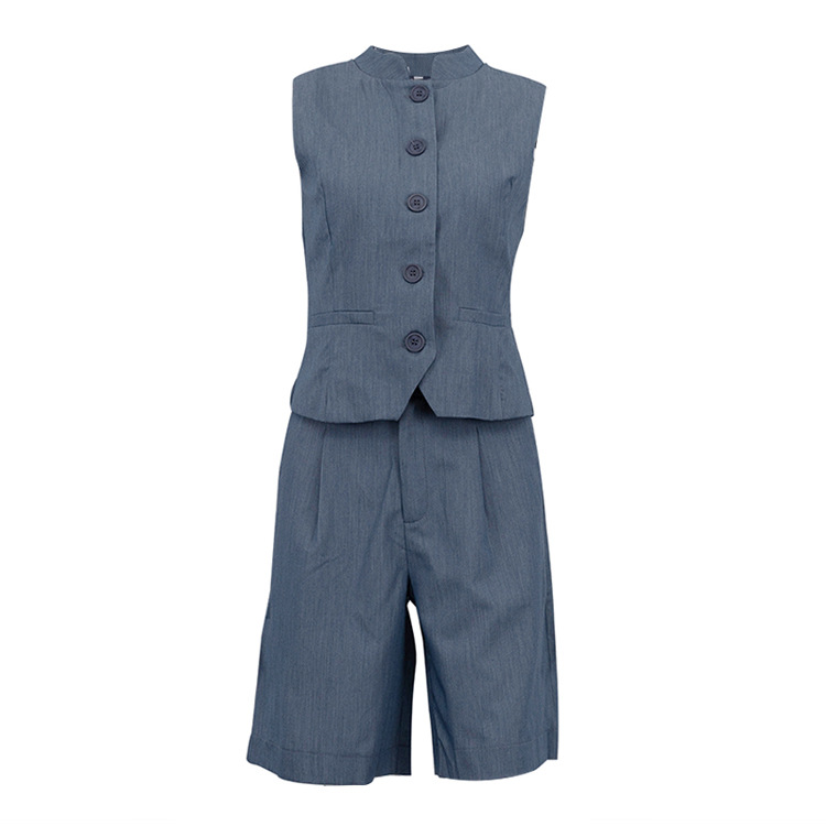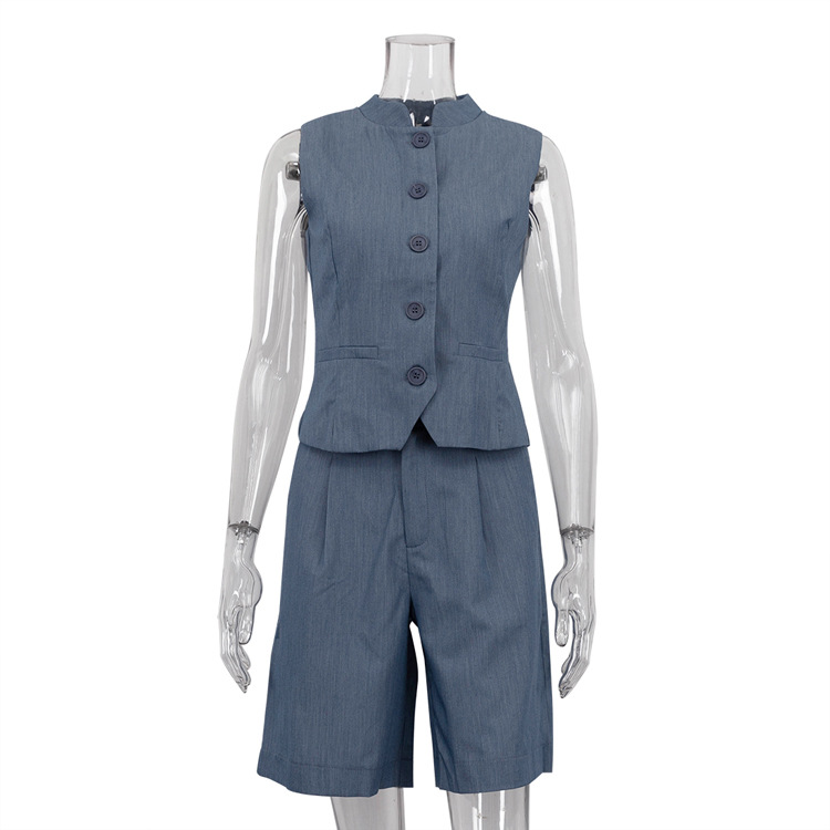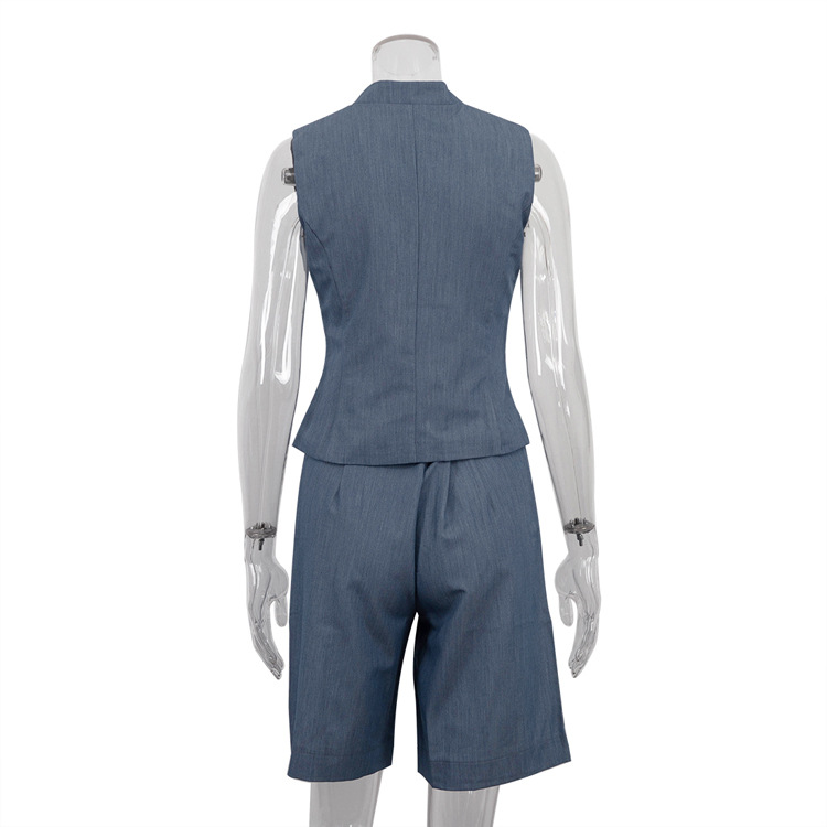 All Match Women Clothing Two Piece Summer Neutral Minimalist Blue Sleeveless Waistcoat Vest Set