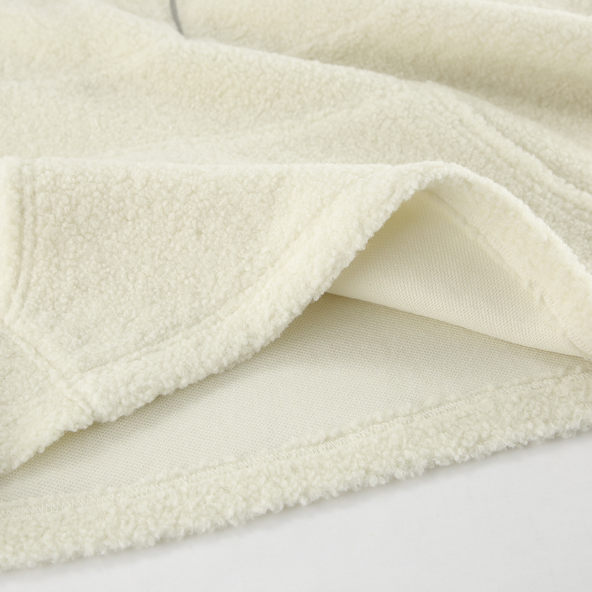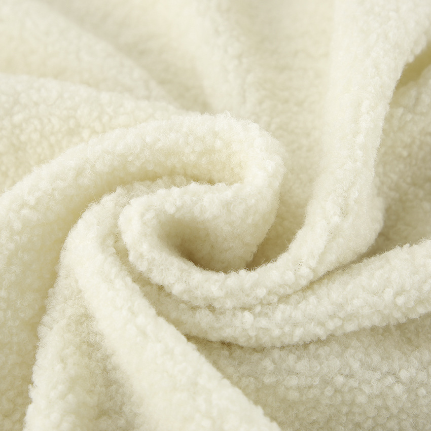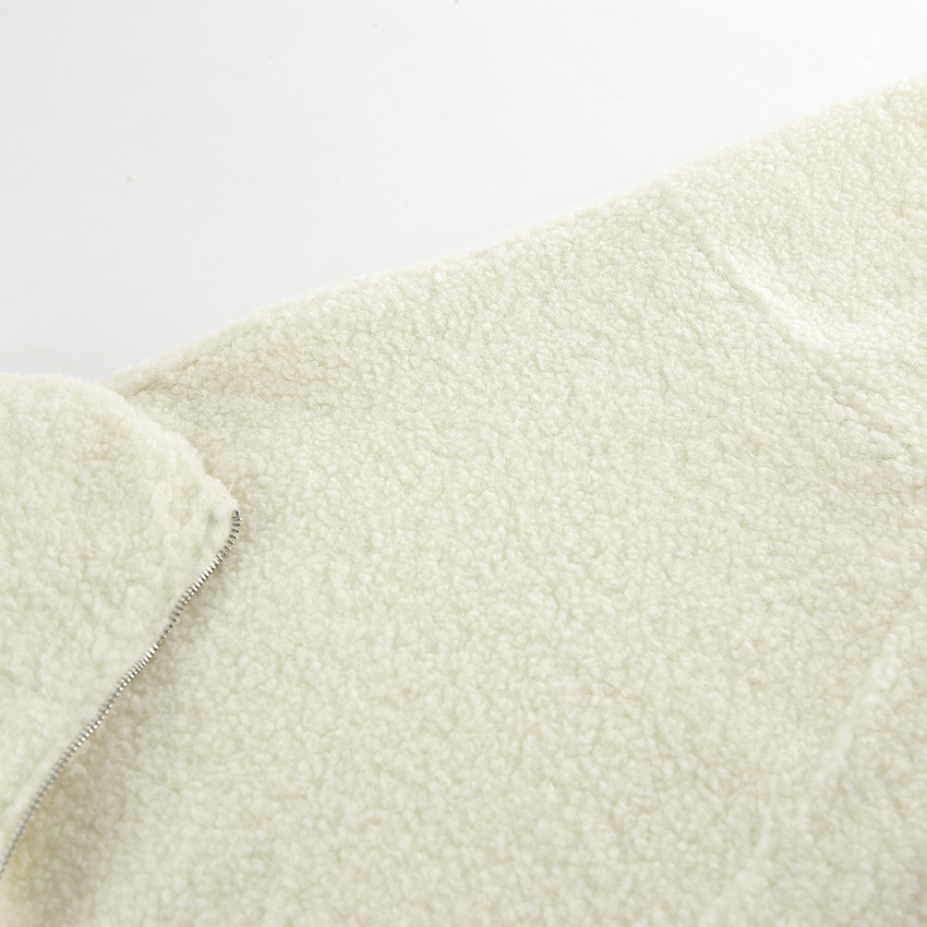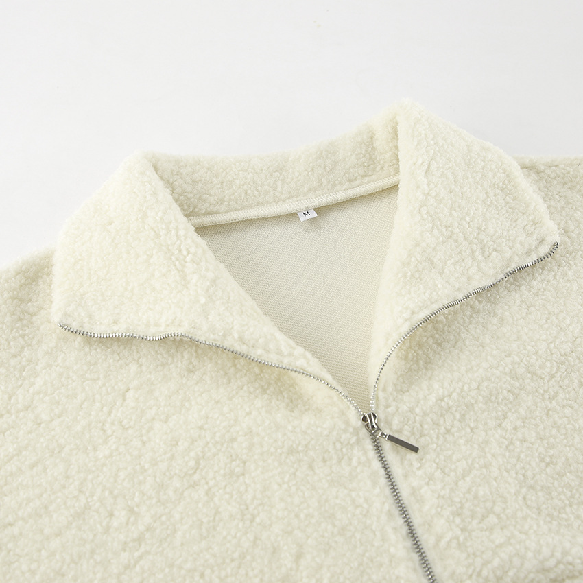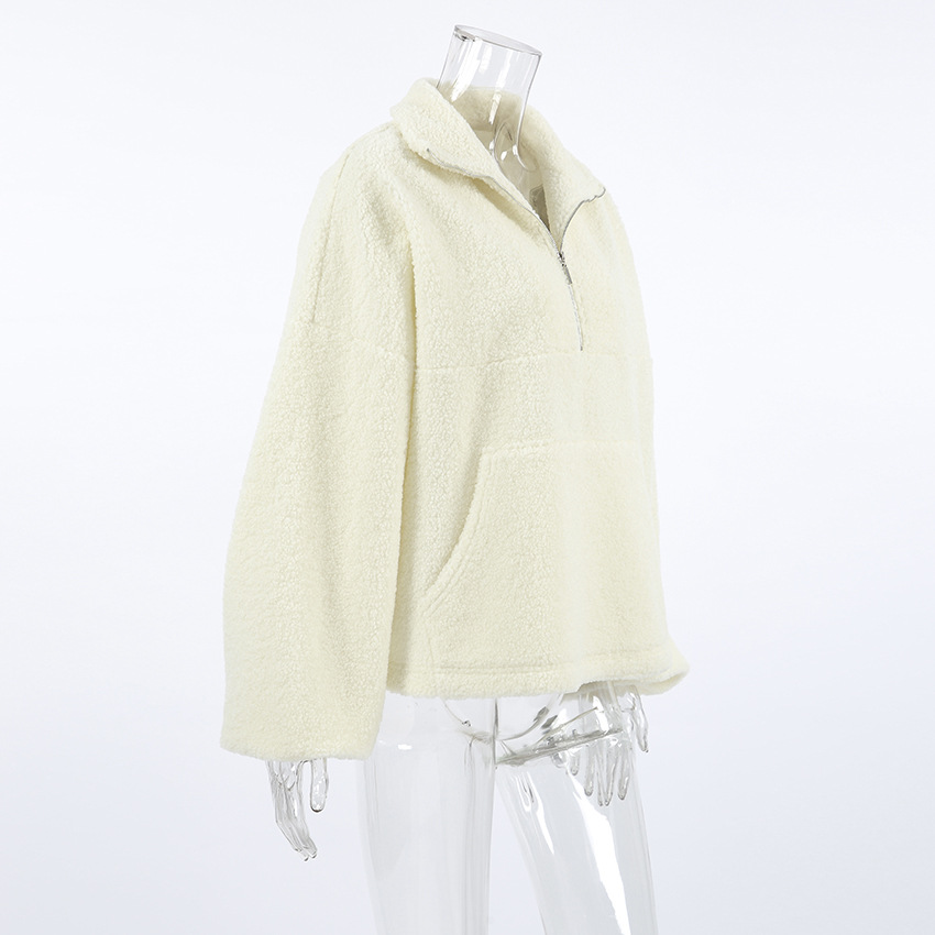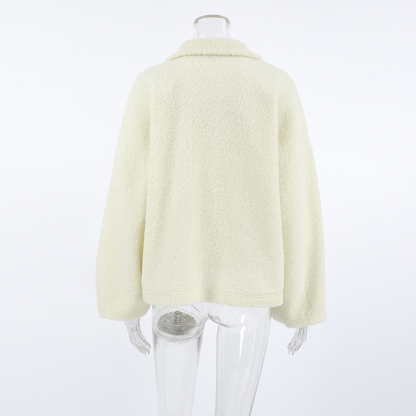 Autumn Winter Personalized Beige Knit Casual Lamb Cashmere Small Stand-up Collar Puff Sleeve Plush Loose Sweater Women