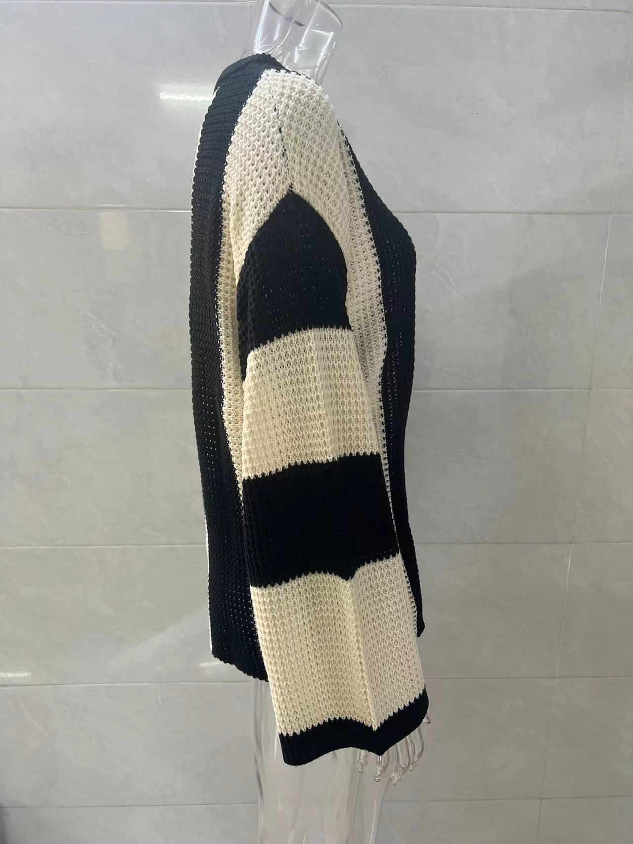 Autumn Winter Western Knitted Sweater Top Round Neck Striped Niche Sweater Coat Women