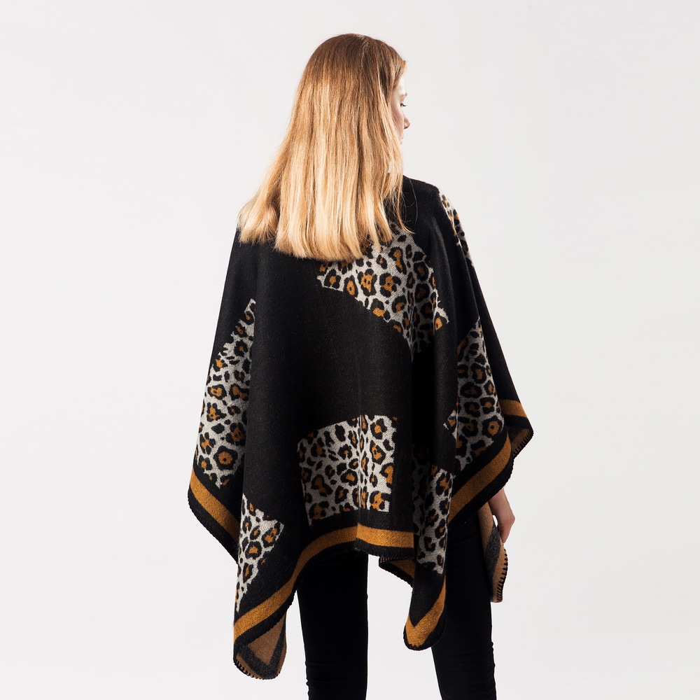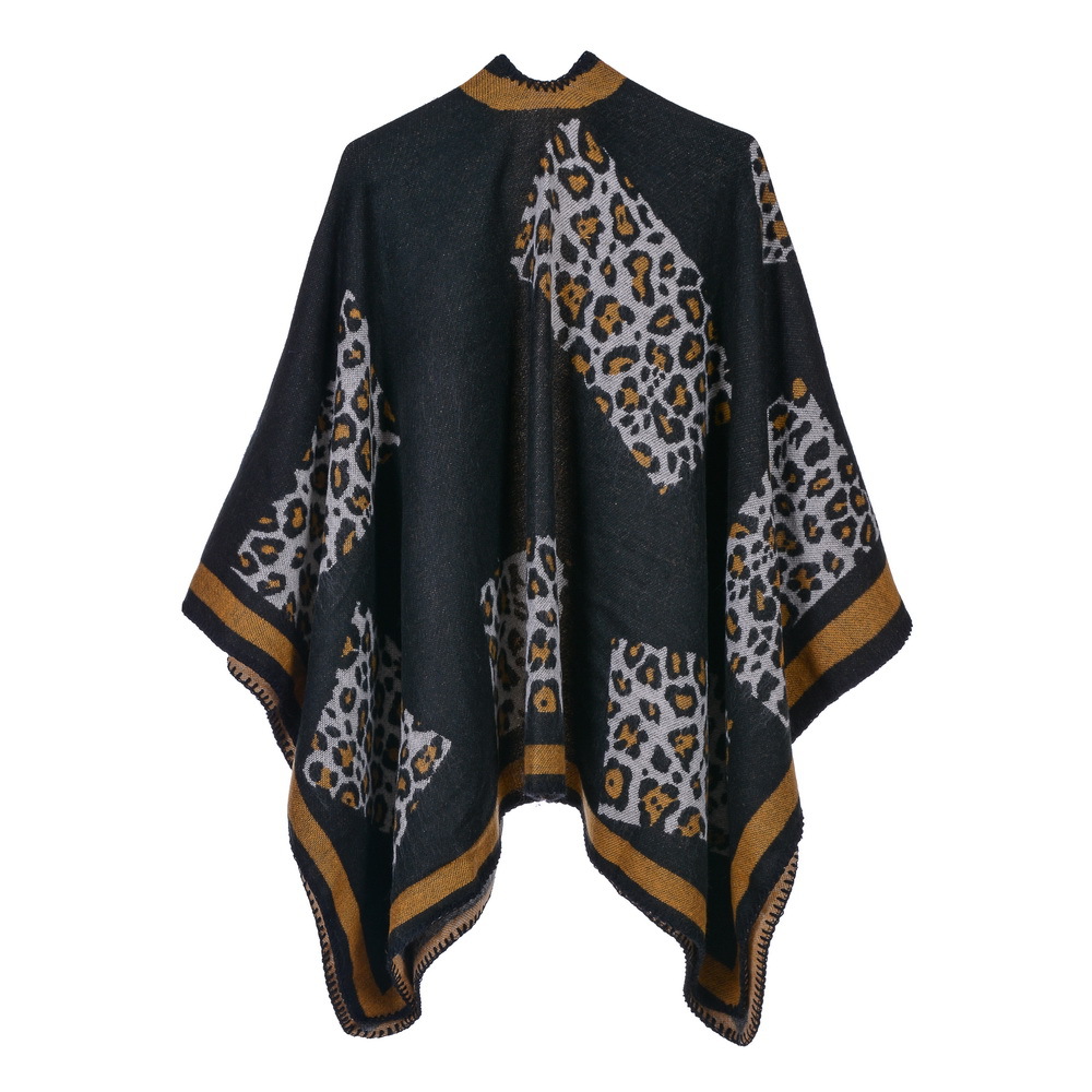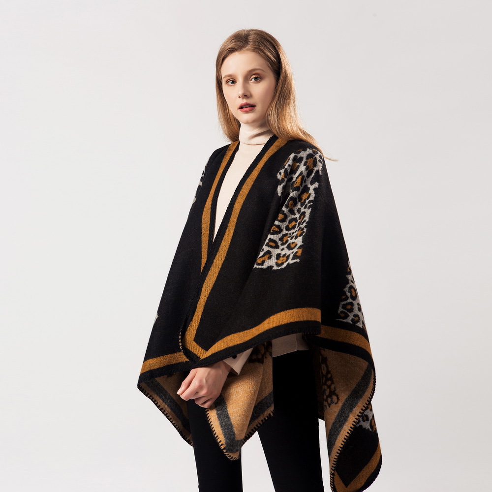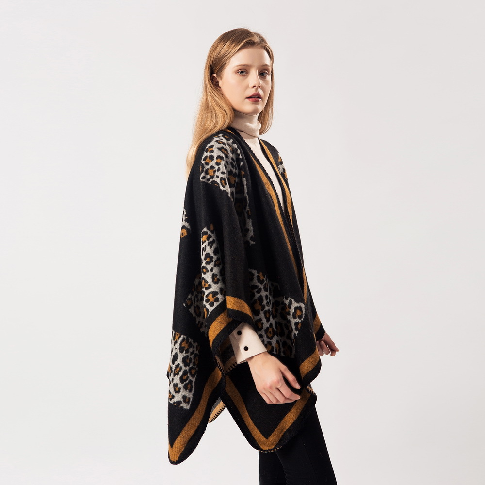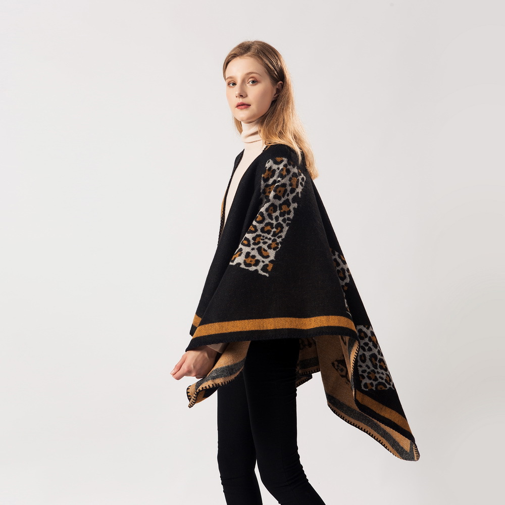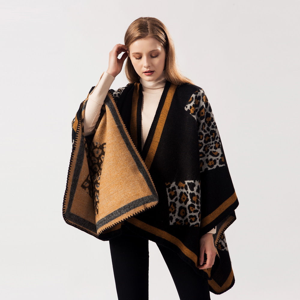 Autumn Winter Women Leopard Pattern Cashmere Large Scarf Dual Use Air Conditioner Shawl Cape