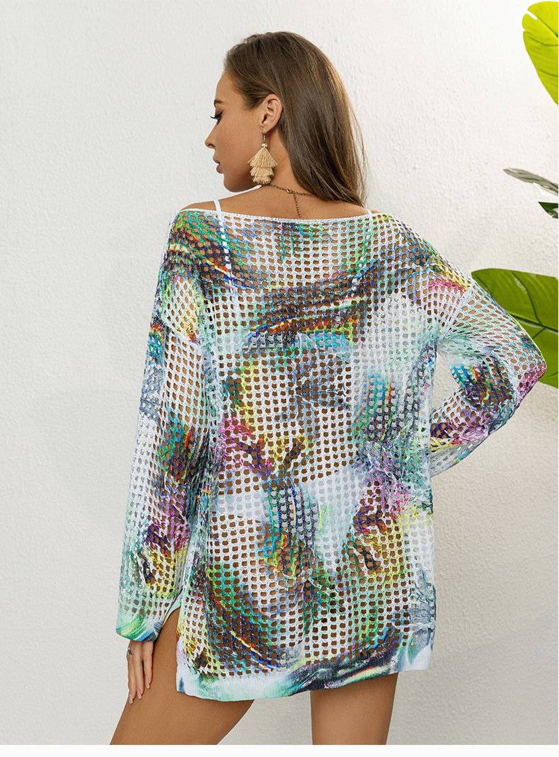 Bikini Cover Up Loose Sun Protection Shirt Idle See Through Blouse Thin T Shirt Women Summer Long Sleeved Shirt