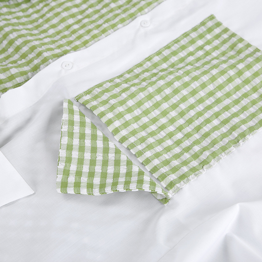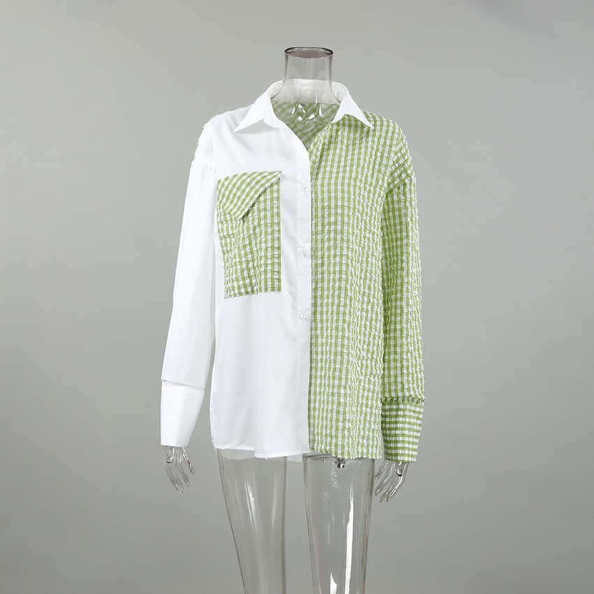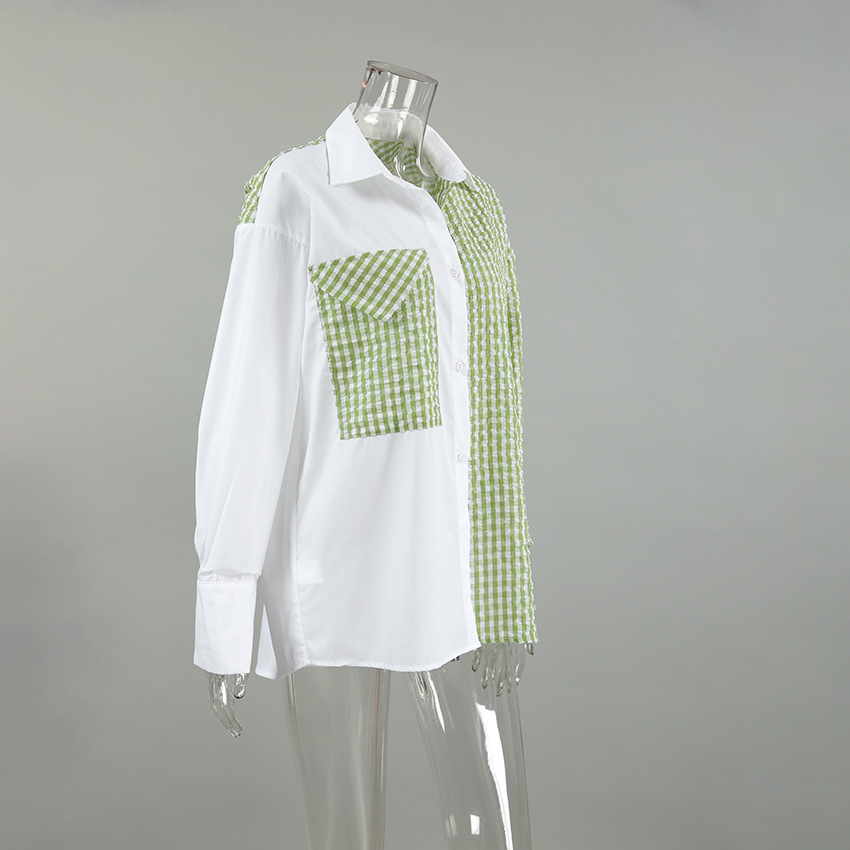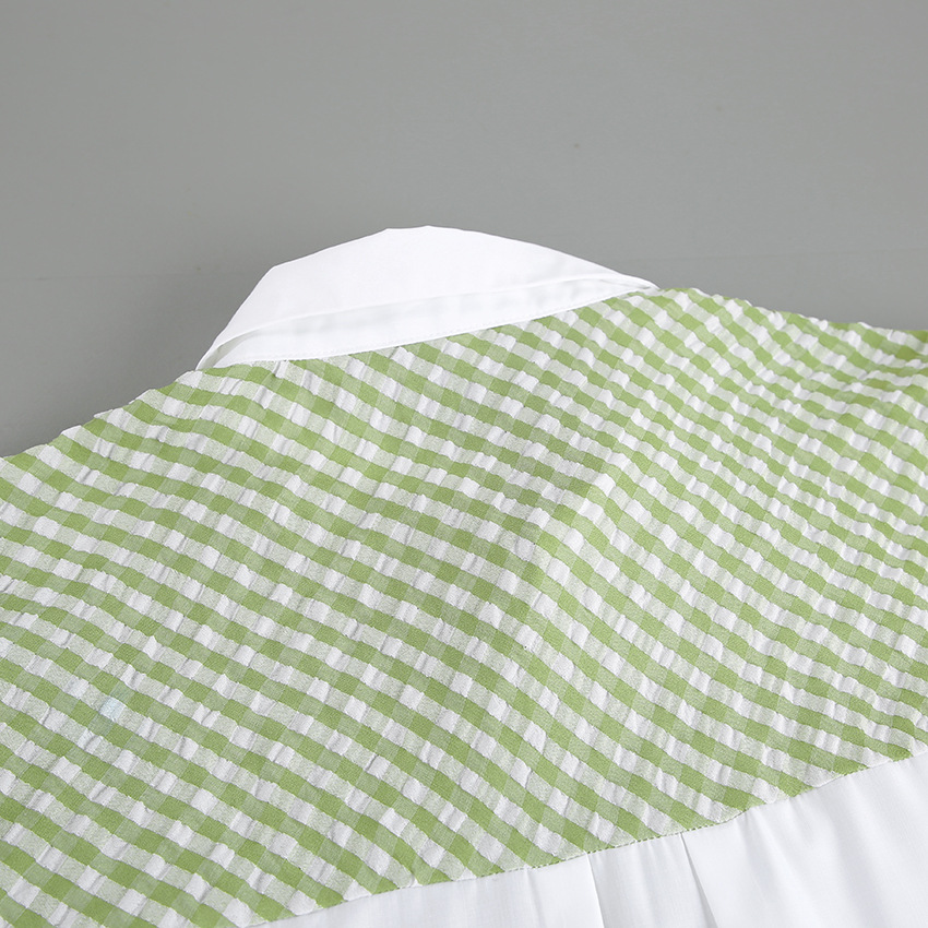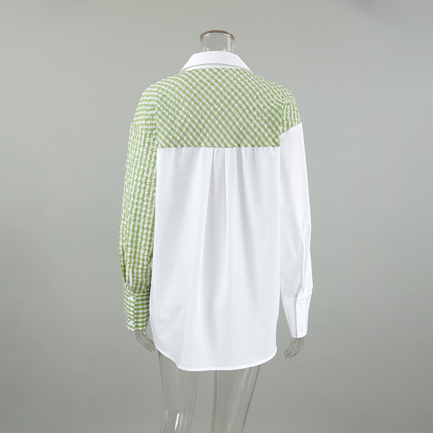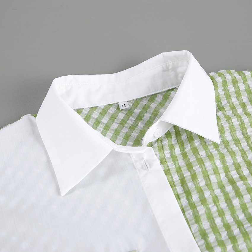 Casual All Matching Shirt Summer Office Contrast Color Check Simple Collared Shirt Sleeve Shirt Women Clothing