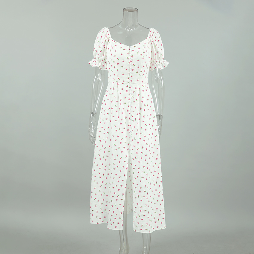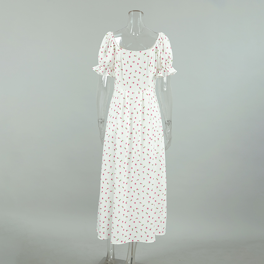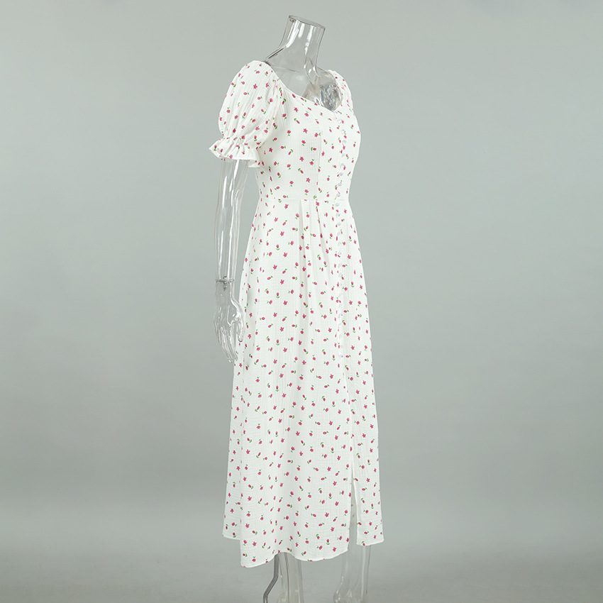 Crepe All Cotton Sexy Puff Sleeve off the Shoulder Printed Summer Fashionable with Side Slit Slim Fit Dress Women Dress