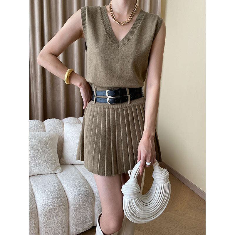 Fashionable Extra Early Autumn High Grade Knitted Vest Pleated Skirt Two Piece Suit