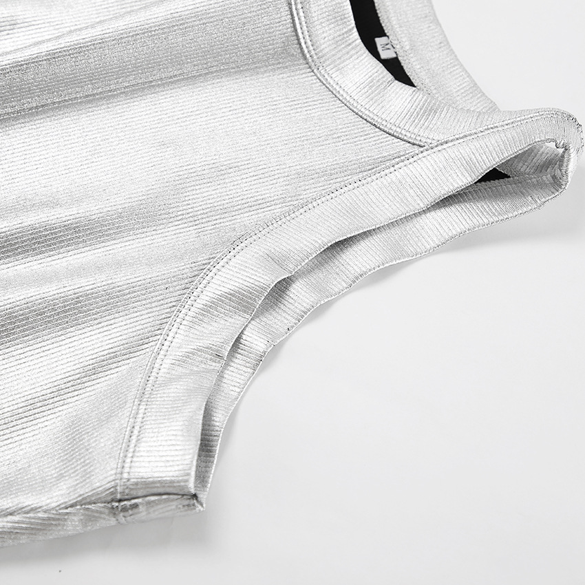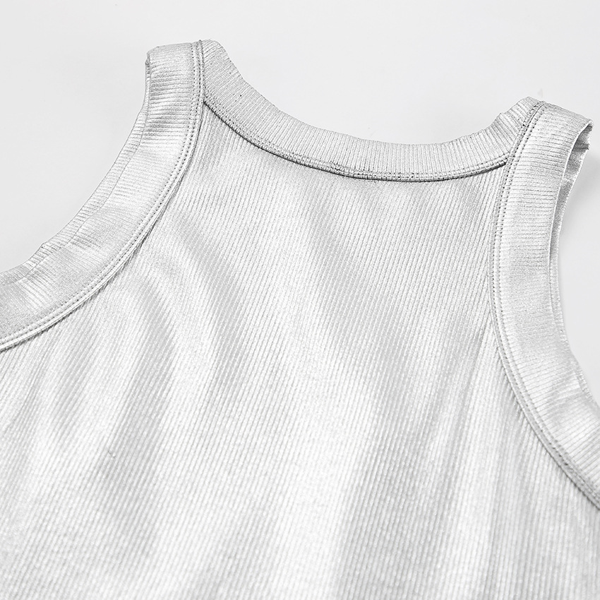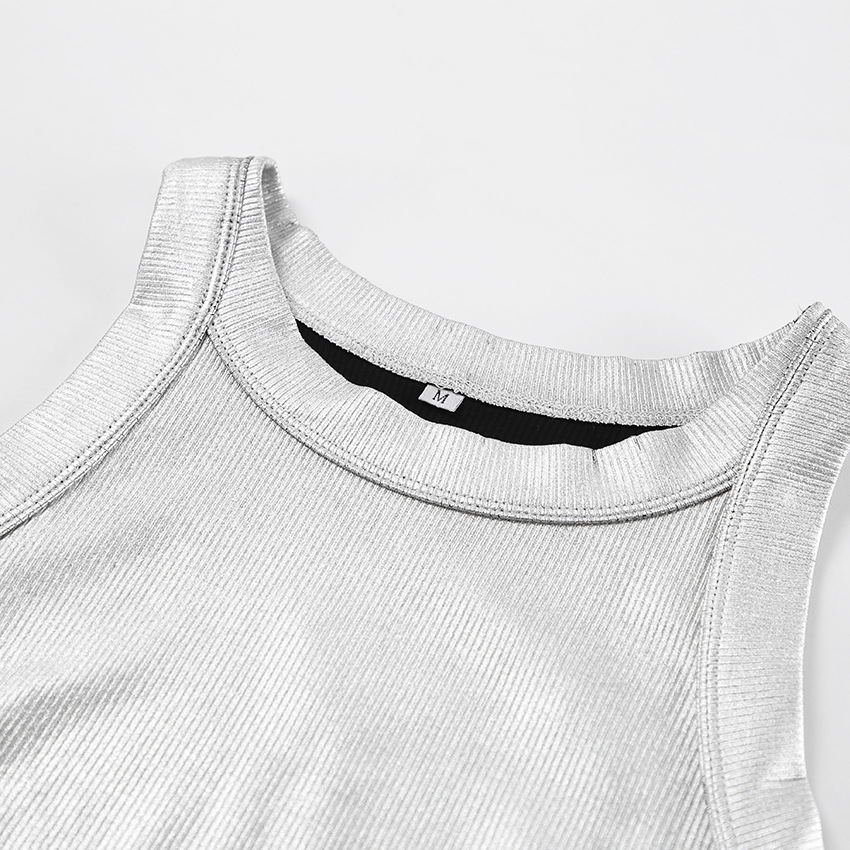 Fashionable Knitted Sunken Stripe Summer round Neck Camisole Vest Sexy Hollow Out Cutout out Short Solid Color Top for Women