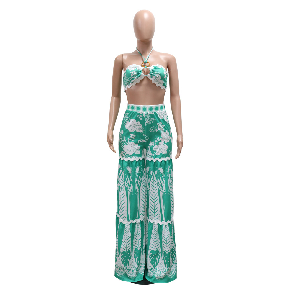 Lace up Tube Top with Loose Wide Leg Pants Two Piece Set