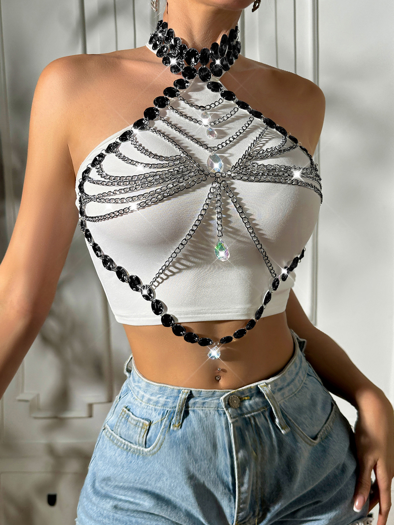 Ornament Sexy Acrylic Leather Multi Layer Chain Chest Necklace Women Metal Leather Bra Accessories Body Cha