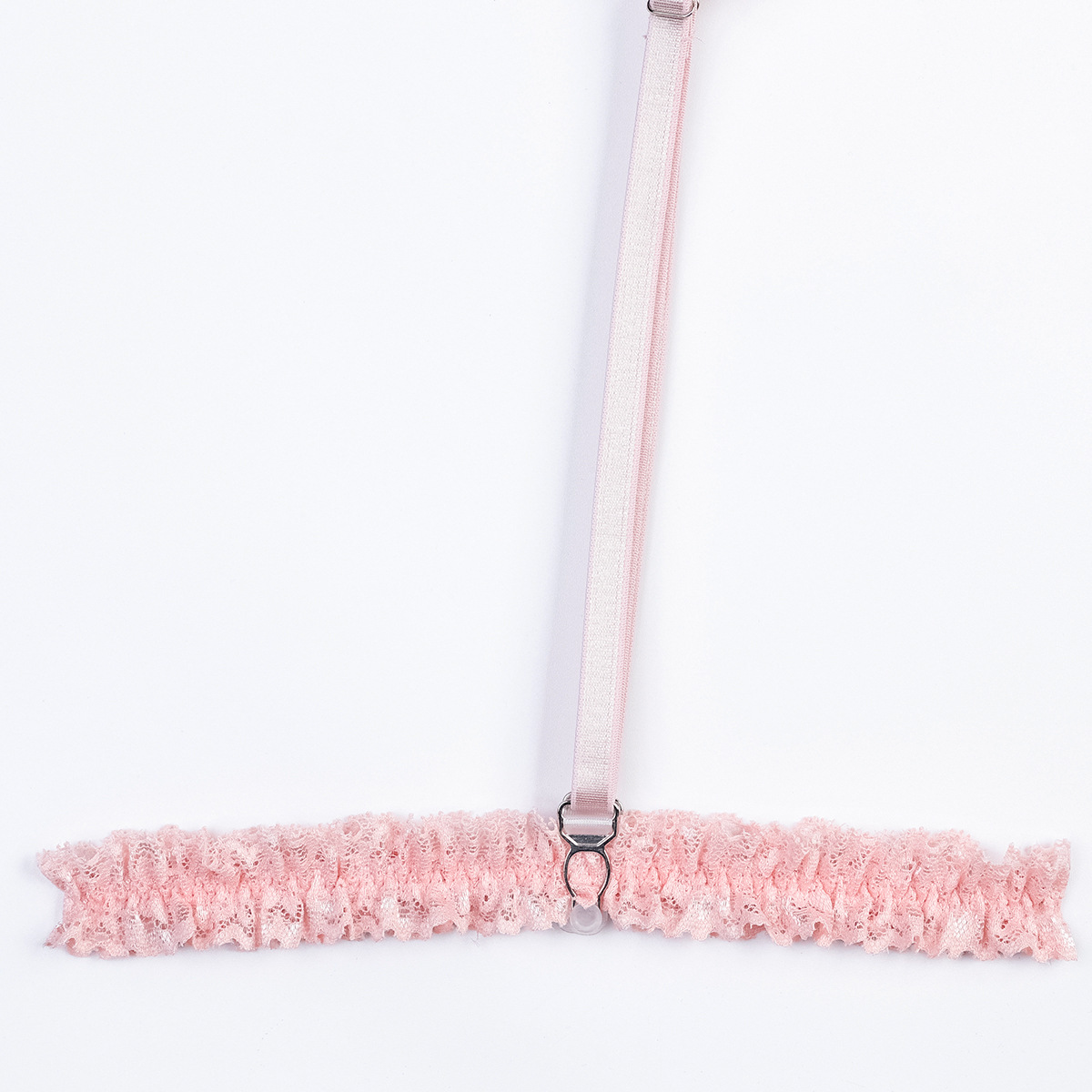 Pink Lace Pleated Lace Hollow Out Cutout Fresh Cute Small Sling See through Sexy Lingerie Set