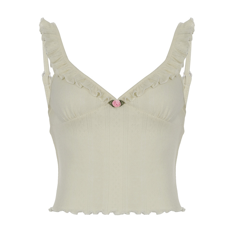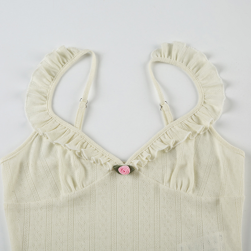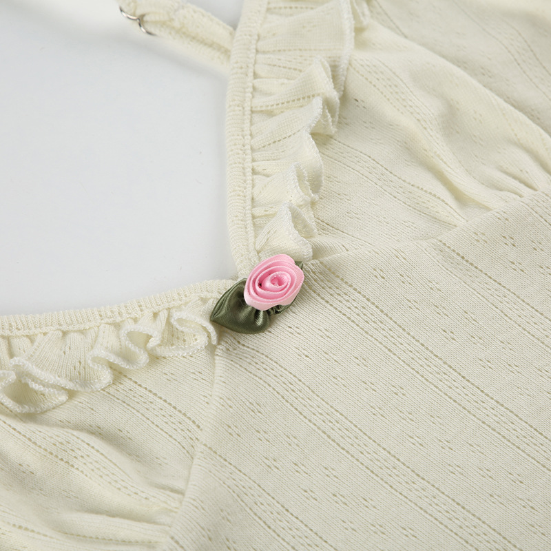 Sexy Flying Sleeve Floral Bow Tie Camisole Sexy Street V neck Cropped Top