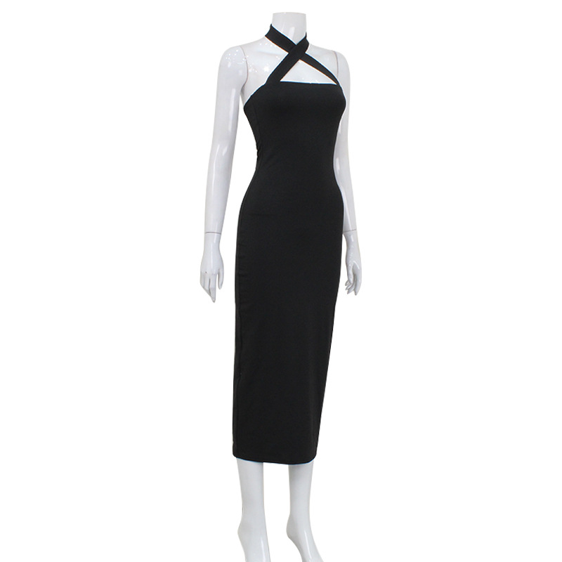 Spring Autumn Women Clothing Sexy Slim Halter Lace Up Tube Top Dress Solid Color Sheath Maxi Dress