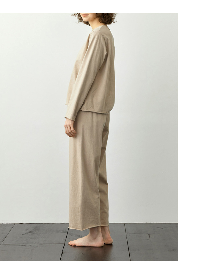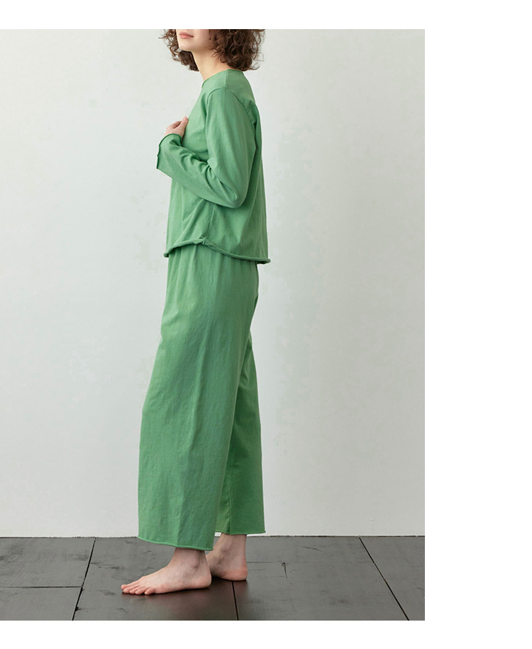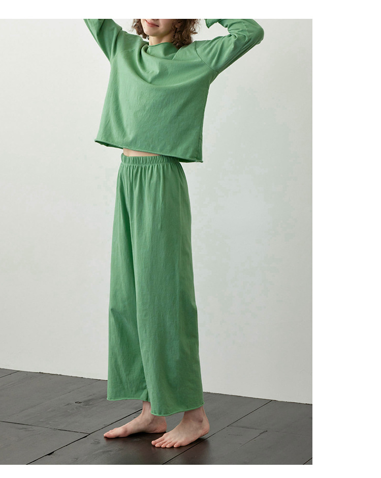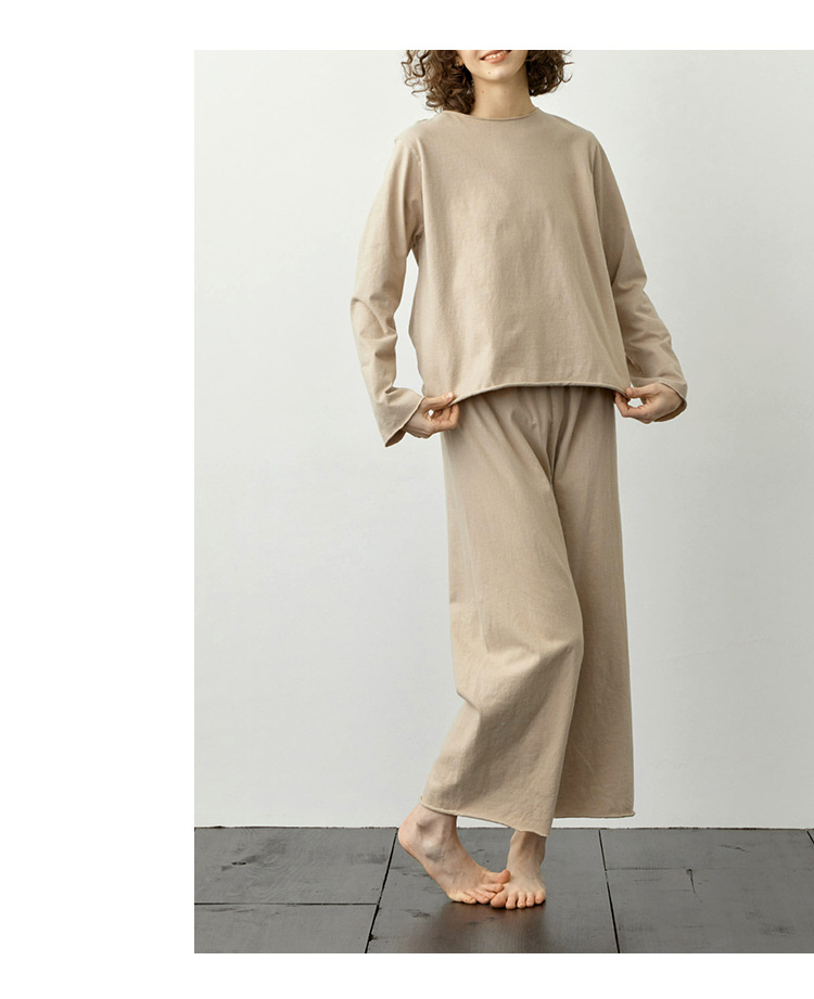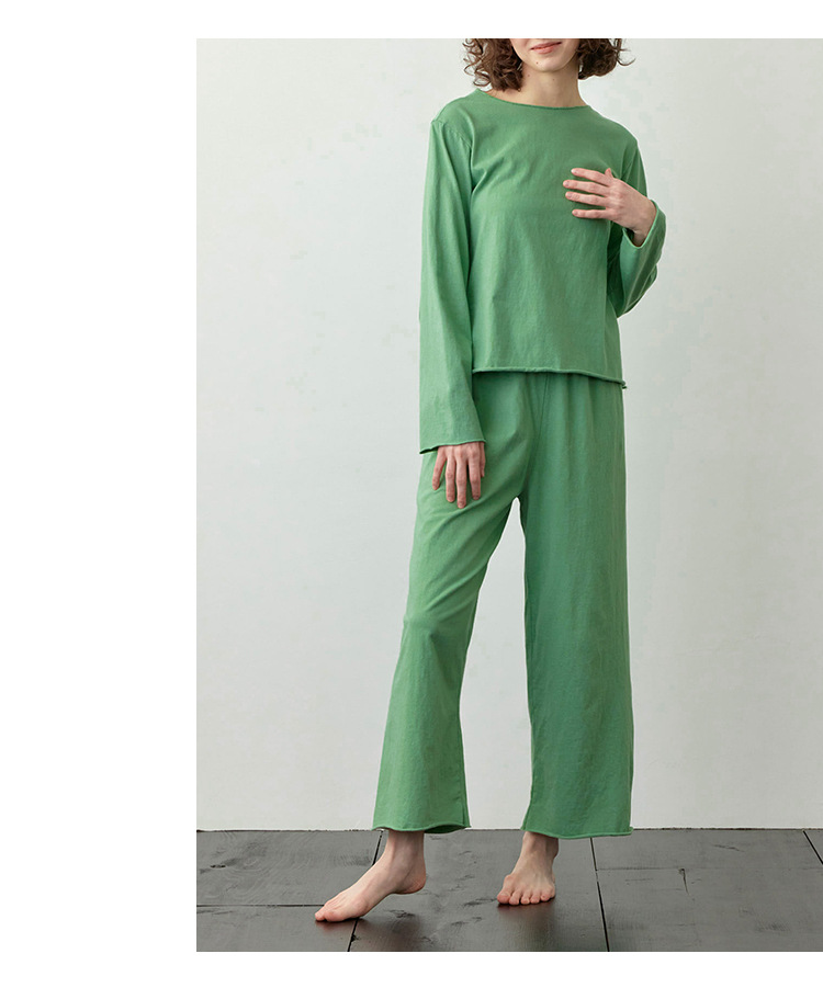 Spring Pure Cotton Home Wear Casual round Neck Long Sleeve Pajamas Simple Solid Color Can Be Worn outside Pajama Pants Two Piece Sets