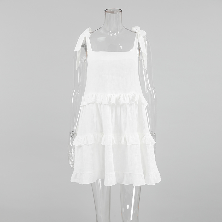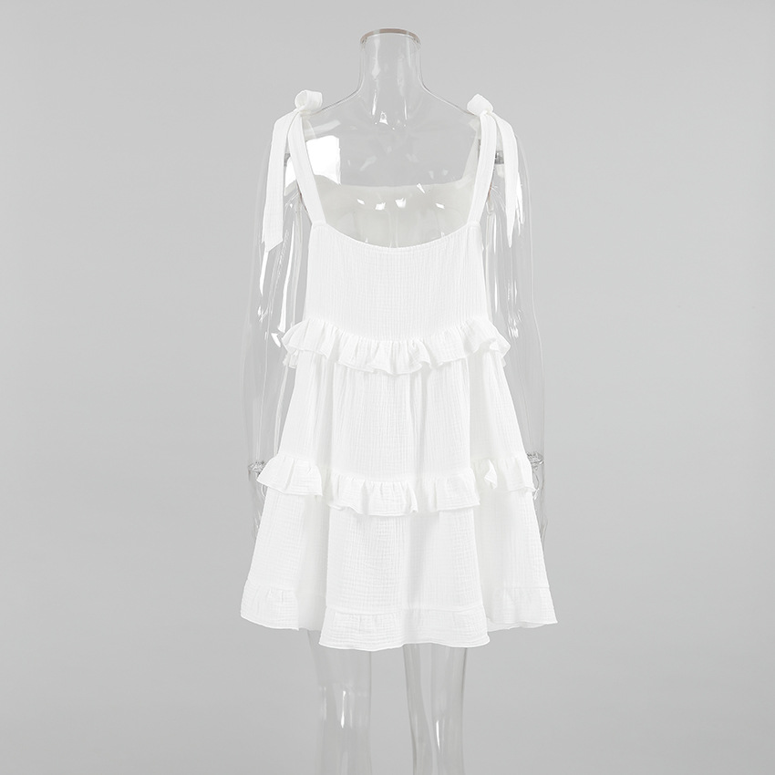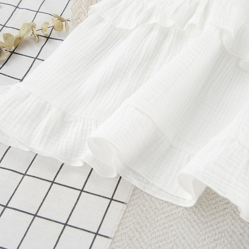 Summer Thin Pure Cotton Nightdress Tied Lotus Leaf Design Can Be Worn outside Ladies Homewear