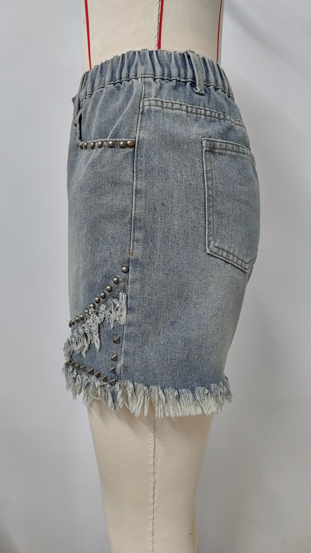 Summer Washed Casual Denim Rivet Frayed Shorts