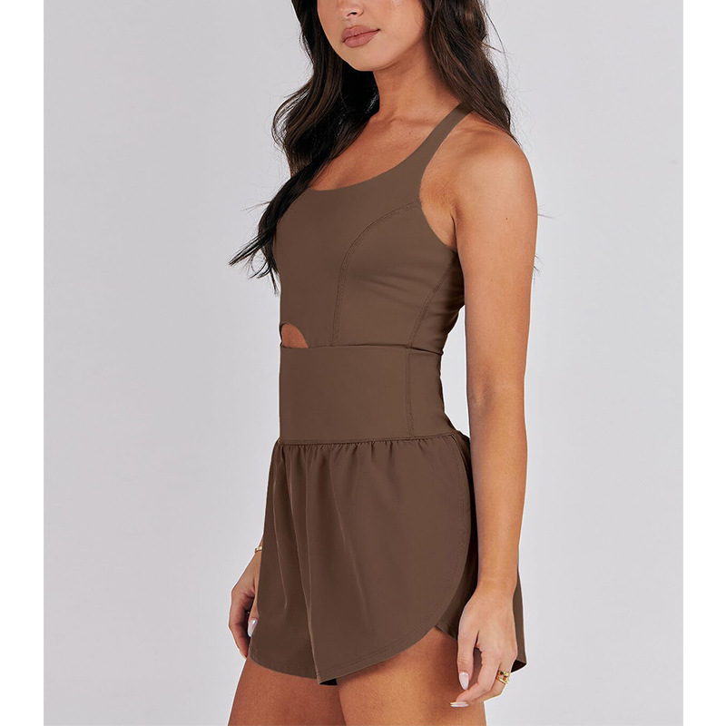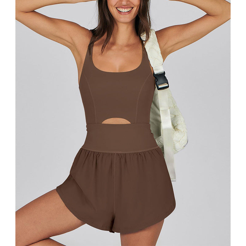 Summer Women Hollow Out Cutout Sling Slim High Waist U Collar Exercise Yoga Clothes
