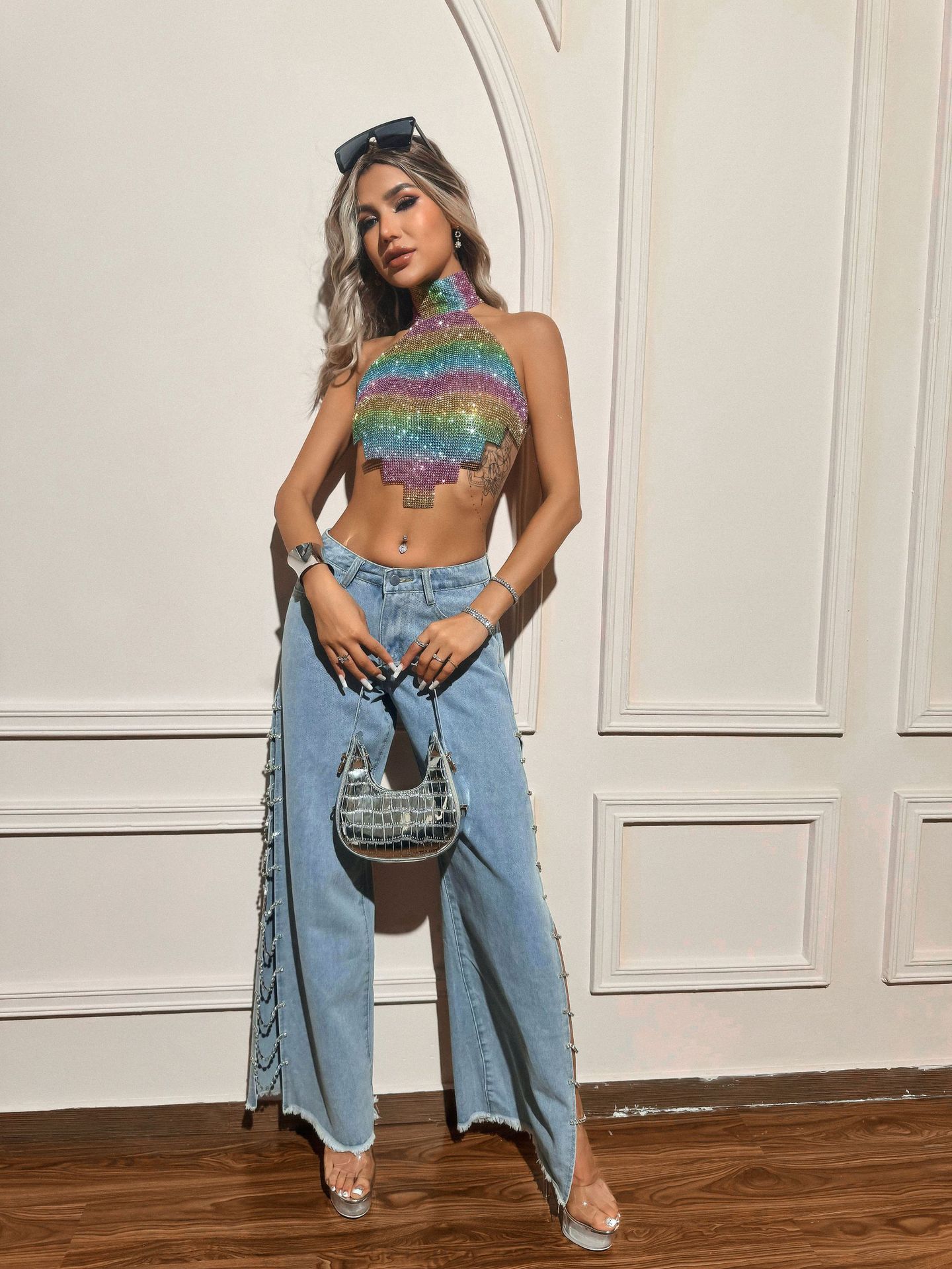 Sweet Spicy Top Gradient Color Vest Metal Full Diamond Colored Tank Top Women Clothing