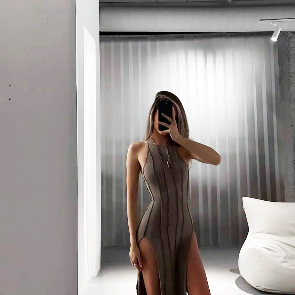 Vest Dress Sexy Slimming Slim Fit Slit Big Long Leg Fish Bone Maxi Dress
