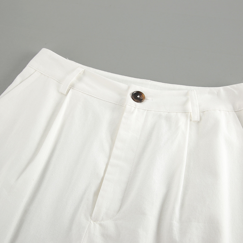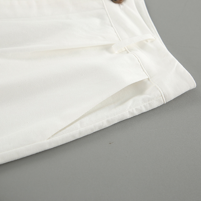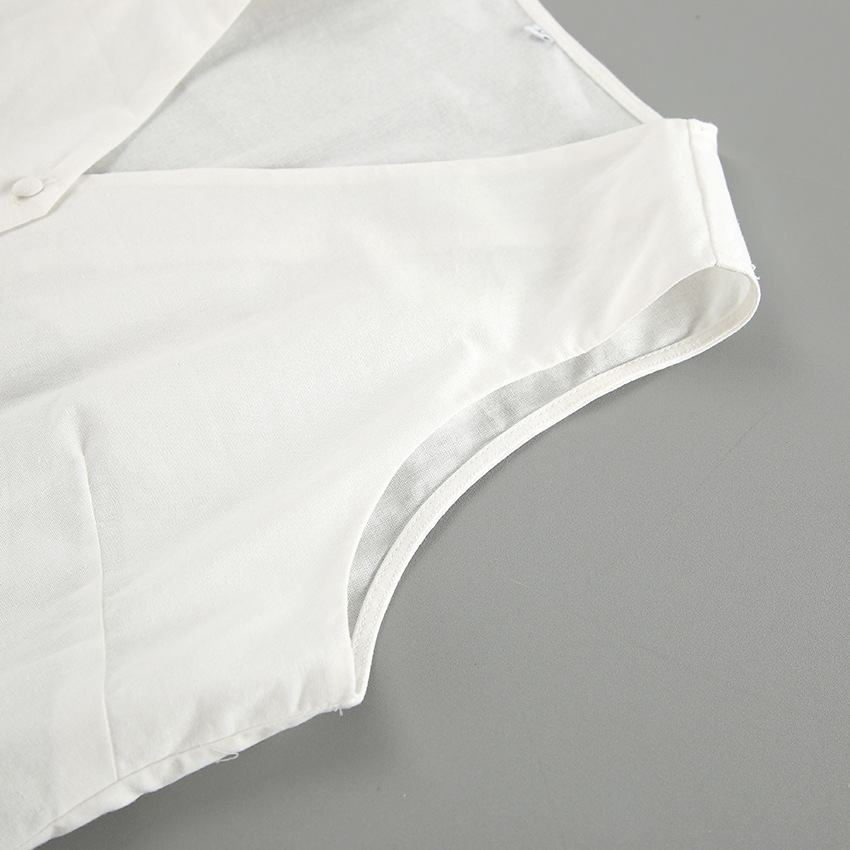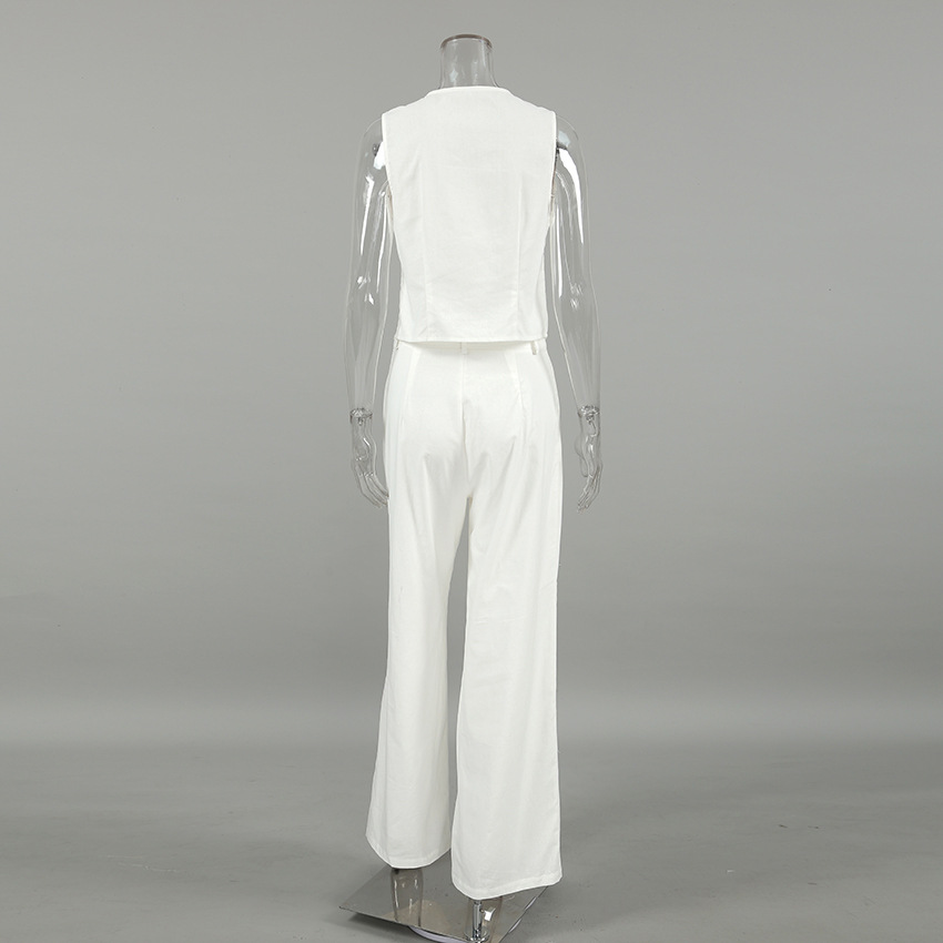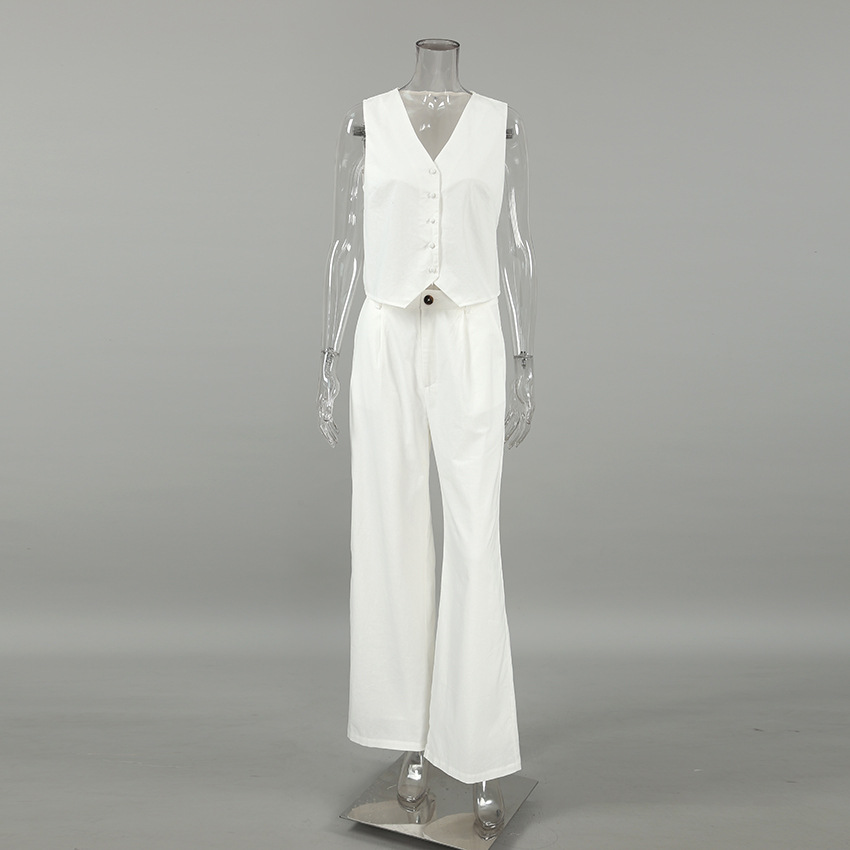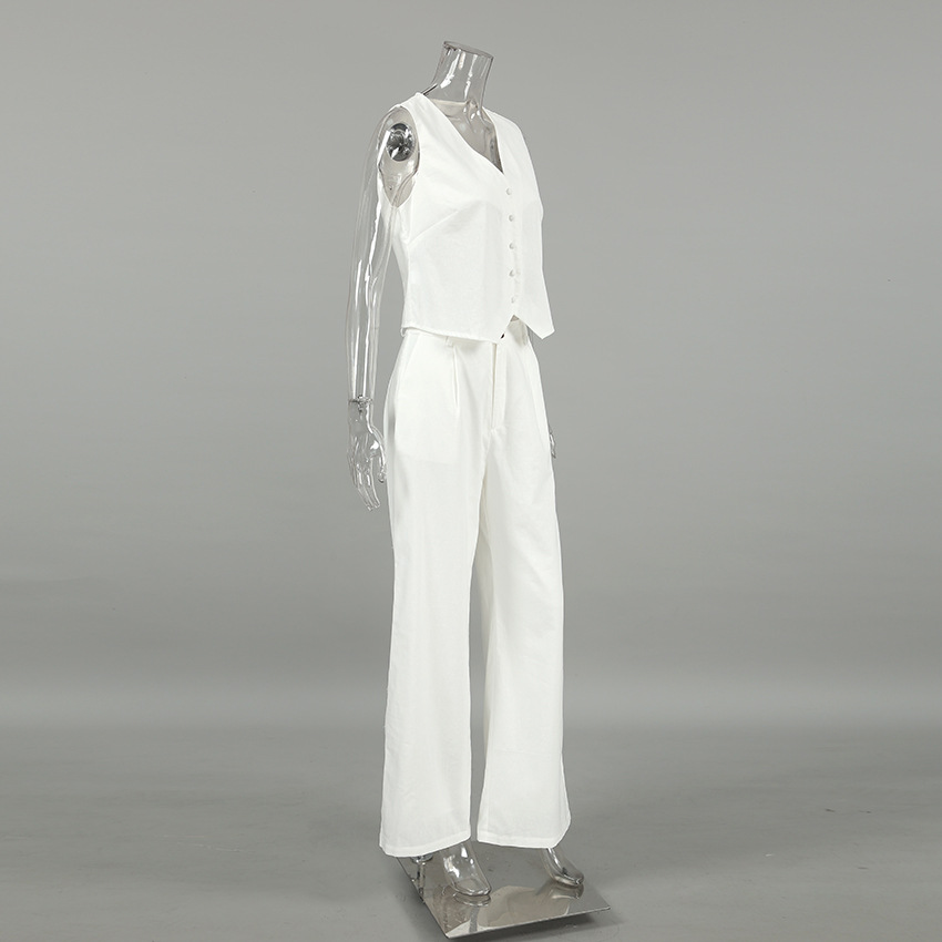 White Cotton Linen Sleeveless V Neck Vest Vest Pants Suit Summer Two Piece Set Women