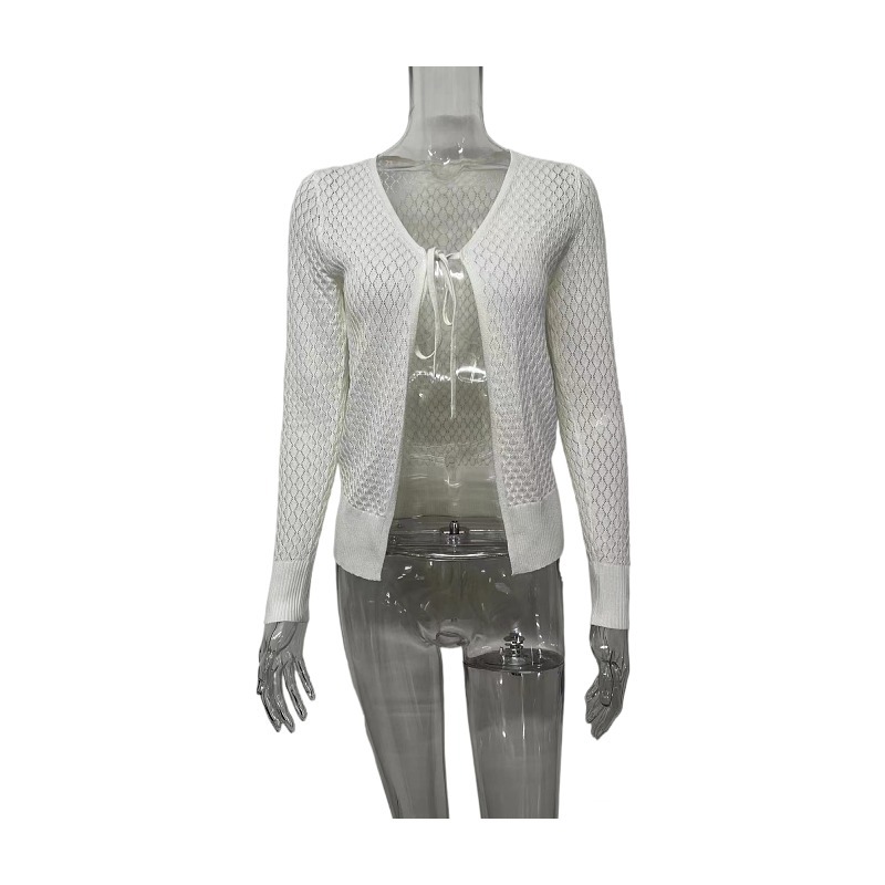 Women Autumn Advanced Texture Lace Up Cutout Long Sleeved Sweater Cardigan Coat Women