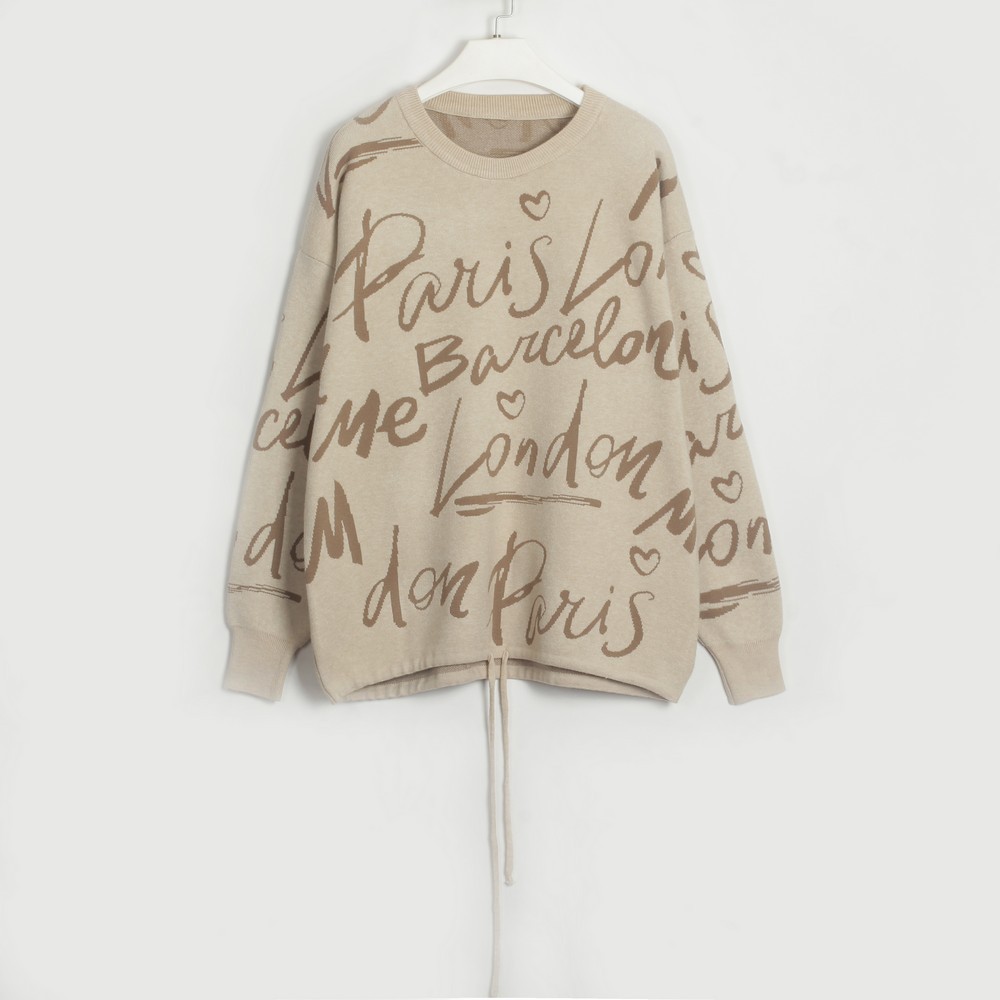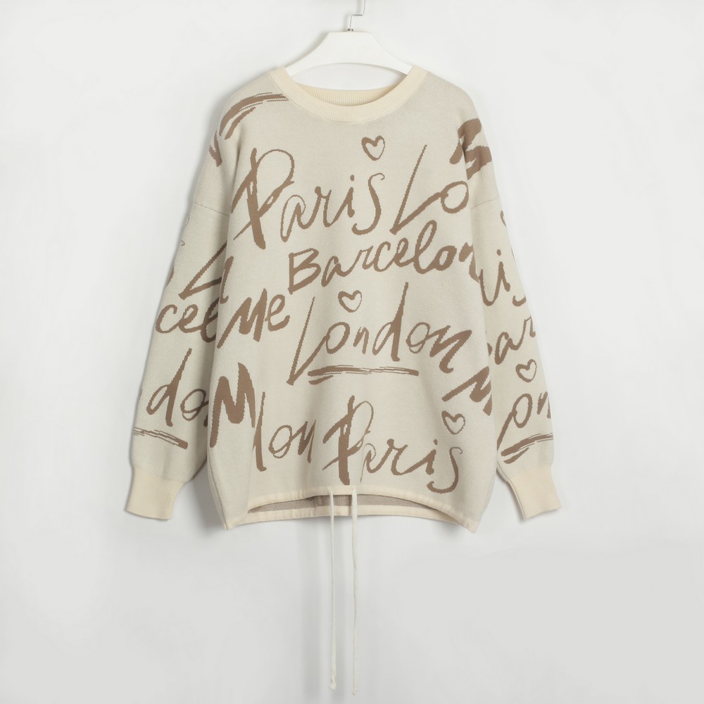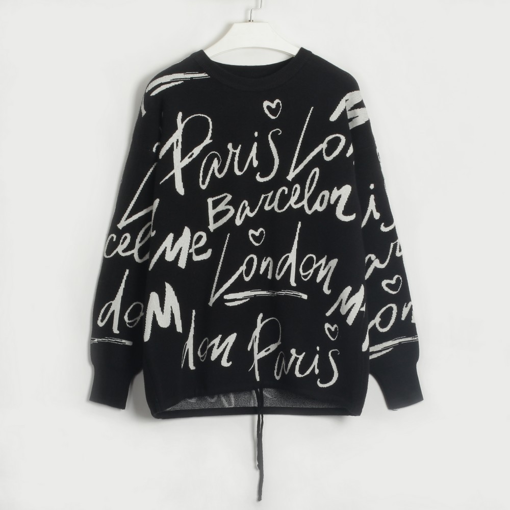 Women Clothing Letter Graphic Bandage Street Fashionable Knitted Sweater Women