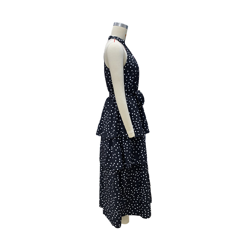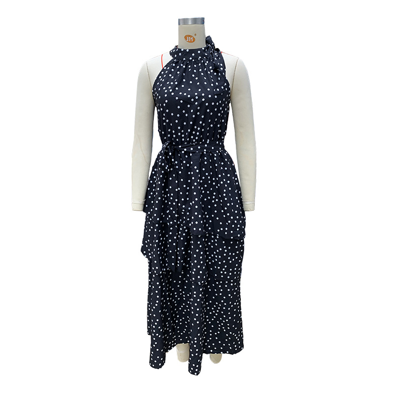 Women Clothing Polka Dot Printing Socialite Hepburn Mid Length Dress