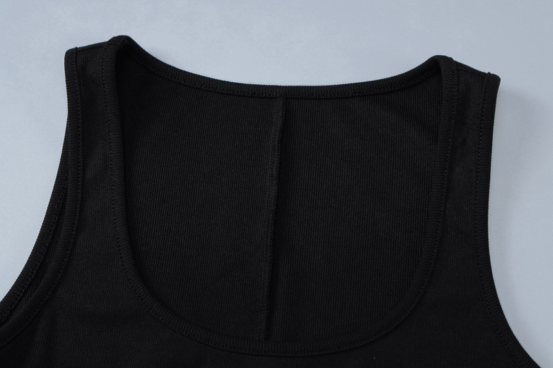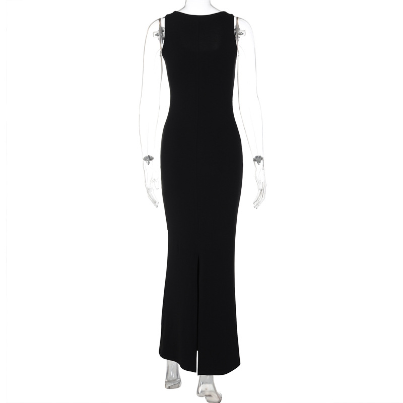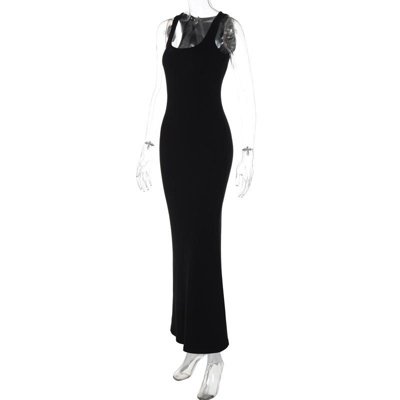 Women Clothing Summer Solid Color Basic Square Collar Sleeveless Slim Slimming Long Back Slit Dress