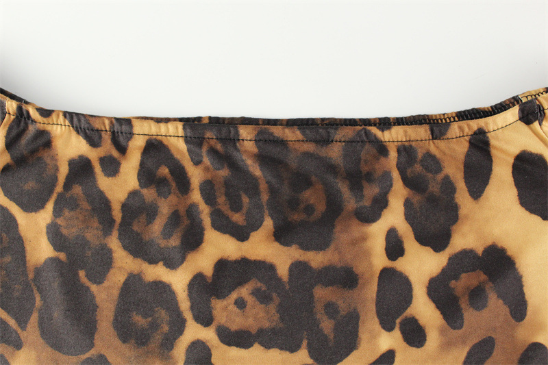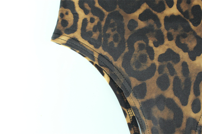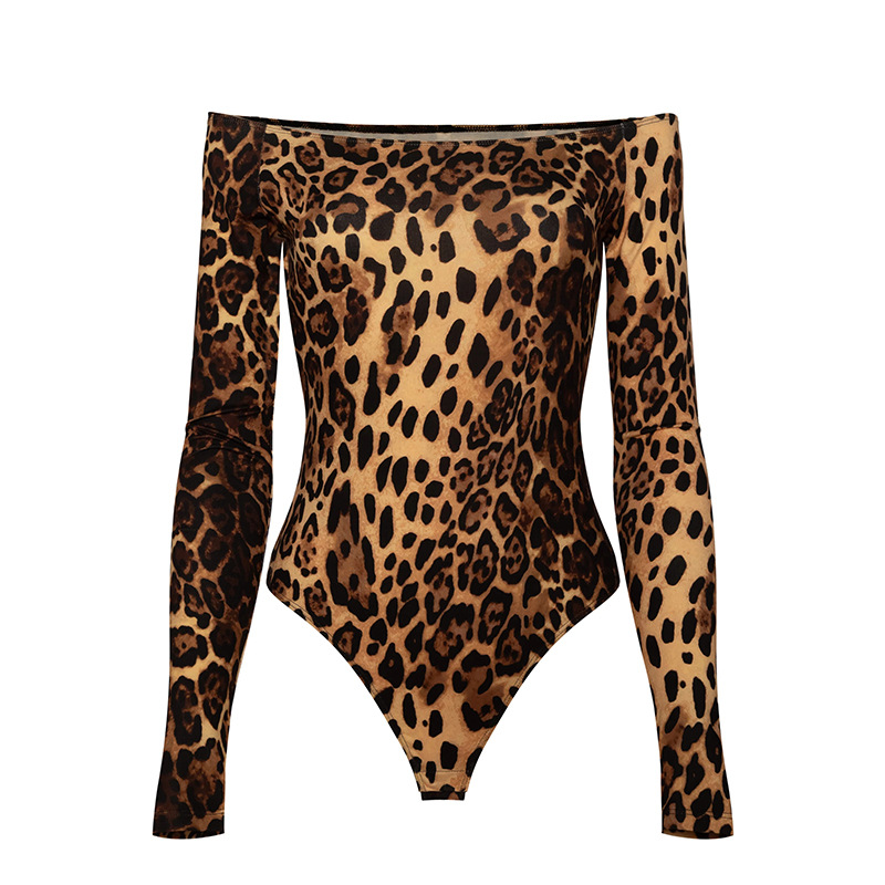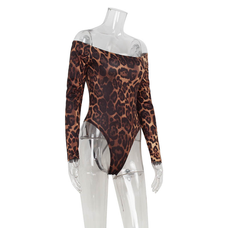 Women off Neck High Waist Long Sleeve Leopard Print Jumpsuit Tight Top
